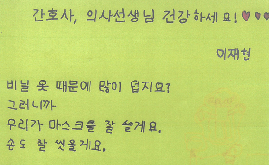 어린이집 아이들이 의료진에게 보낸 위문편지 보니