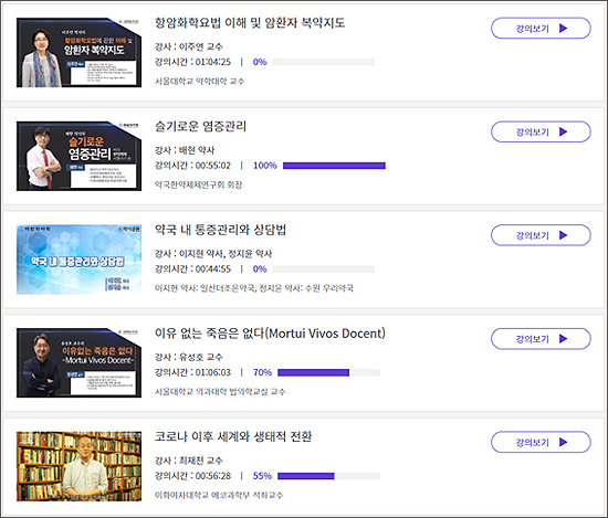 시약사회가 마련한 강의 콘텐츠는 임상약학, 복약지도, 약국경영, 약국한약, 부작용보고, 중소요양병원 근무약사교육, 인문교양 등 13개이며, 이중 11개 강의는 자막을 제공할 예정이다.