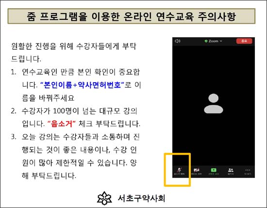 서초구약, 첫 '화상 연수교육'에 약사 120여명 참여