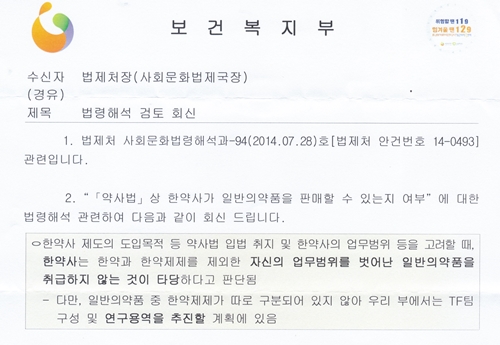 또한 복지부 한의약정책과도 2012년 민원답신을 통해 "약사와 한약사의 업무가 혼동되지 않도록 향후 업무추진 시 국민들과 이해관계자, 전문가의 다양한 의견 수렴을 통해 보다 나은 정책추진이 되도록 힘쓰겠다"고 밝혔지만 8년간 아무런 조치도 취하지 않았다는 지적이다.