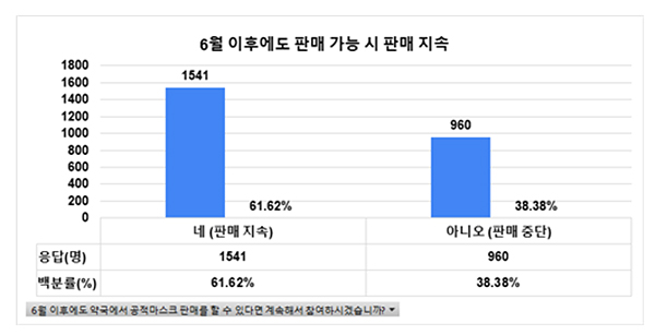 약사회는 코로나19 확진자 증가나 마스크 수급에 문제가 발생해 6월 이후에도 약국에서 공적마스크 판매를 다시 할 수 있게 된 경우를 가정해 질문했다.