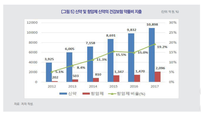 보사연은 "신약 개수 및 신약 약품비 지출에서 항암제가 차지하는 비율이 점점 상승하고 있고, RSA로 등재되는 신약이 점점 늘고 있다"며 "신약의 불확실성을 관리하고 혁신적 신약에 대한 접근성을 확보할 수 있도록 여 결정에서 신약의 임상적 유효성 평가 구조를 강화하는 등 재정 지속성을 확보할 수 있는 정책이 필요하다"고 밝혔다.