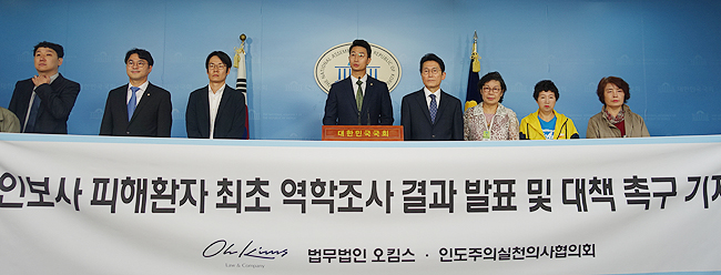 7일 인보사피해환자 902명의 소송을 대리중인 법무법인 오킴스와 인도주의실천의사협의회(인의협), 정의당 윤소하 의원은 '인보사 피해환자 최초 역학조사 결과발표 및 대책촉구' 합동 기자회견을 국회 정론관에서 진행했다.