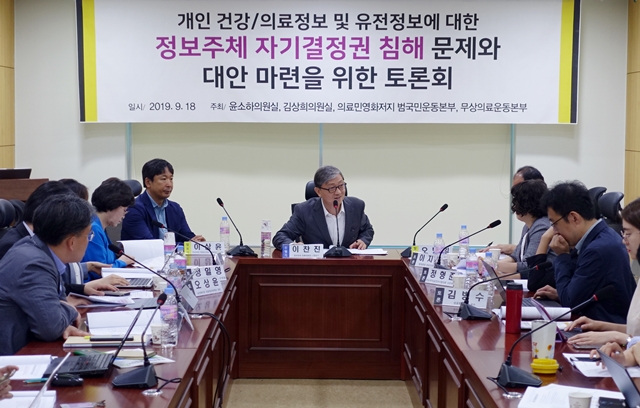 18일 오전 10시 국회의원회관 제7간담회실에서는 개인 건강의료정보·유전자정보에 대한 자기결정권 침해문제와 대안마련을 위한 토론회가 열렸다.