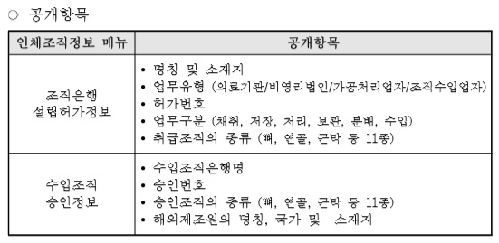 식약처는 향후 조직은행 허가 유효기간 등 공개 항목을 확대할 예정이다.