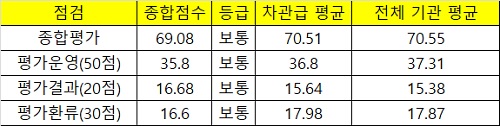 아울러 행안부는 "원인 분석과 정책 제언 충실성, 환류 우수사례 탁월성과 적절성이 타 항목보다 특별히 점수가 낮다"고 평했다.