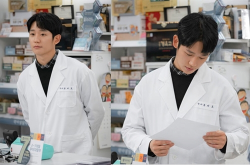 가운 입은 정해인…약국은 지금 드라마 촬영중