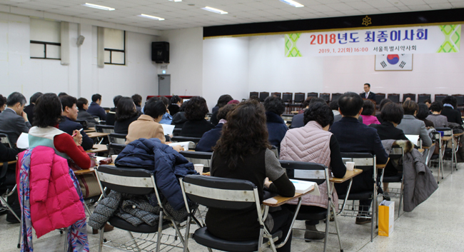 최종이사회는 총 인원 99명 중 참석 48명, 위임 20명으로 성원됐다. 서울시약의 2018년도 결산액 9억5135만8179원, 2019년도 사업계획안과 예산안은 9억8806만5425원이다.