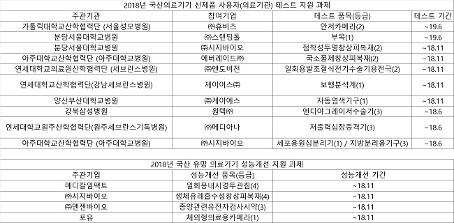 국산의료기기 신제품 사용자 테스트 지원 사업은 지난해 3개 제품과 올해 추가된 7개 제품 등 10개 제품이 선정됐다.