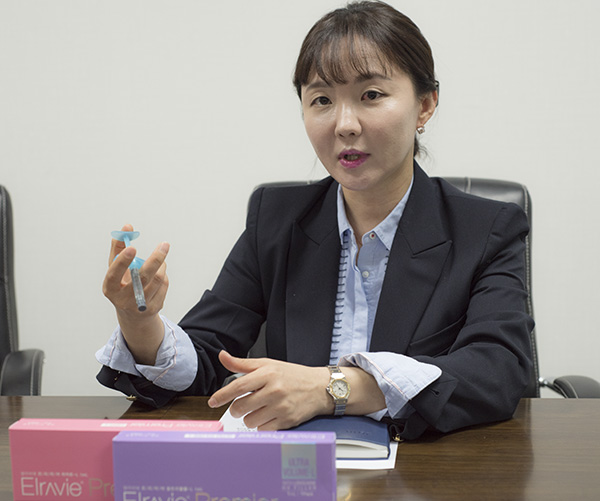 엘라비에는 점탄성을 높이기 위해 고순도 원료가 사용됐다. 18개월 장기 임상을 통해 제품력을 입증했다. 장 부장은 "일반적으로 필러 원료로 점안제급이 사용된다. 의료기기는 점안제급 이상을 쓰면 되지만 휴메딕스는 메디컬 등급 원료를 사용해 차별화 하고 있다"고 설명했다.