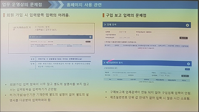 조은구 위원장은 "사용자 정보도 별도로 다 넣어야하고 약국에서 행정기관까지 직접 찾아서 넣어야 하는 시스템"이라며 "이것 하나만 봐도 시스템 위주이지 사용자를 위해 만들어졌다고는 볼 수 없는 시스템"이라고 지적했다.
