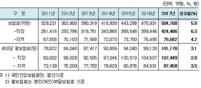 보험료 징수금액은 50조1496억원으로 99.5%의 징수율을 보였지만, 전년 대비 0.2%p 감소한 수치다.