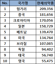 - 완제의약품 수출·입 실적 약 100% 증가...가장 많이 수출된 국가는 '헝가리'