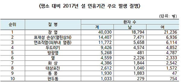 연휴 기간 일별 환자수는 설 전날이 34만5452명으로 가장 많았고 설 다음날이 18만1051명, 설 당일이 11만2688명 순이었다. 지난해 설 연휴 직후 평일이었던 1월 31일에는 전국에서 371만9852명이 병원을 찾았다.