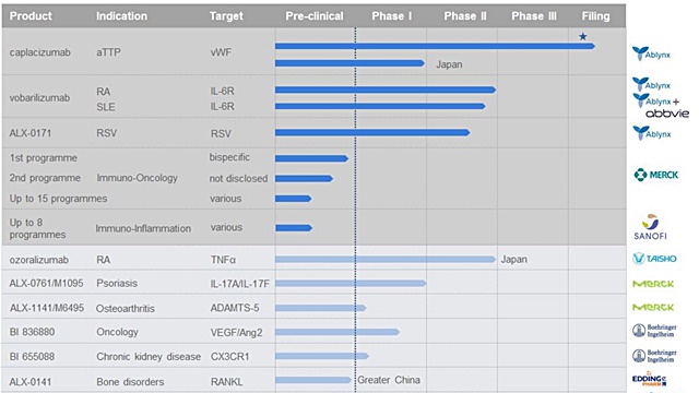 사노피 그룹은 지난달 28일(현지시각) 한주당 45유로, 총 39억 유로(미화 48억 달러)를 지불하는 조건으로 아블링스를 인수하기로 합의했다고 밝혔다.