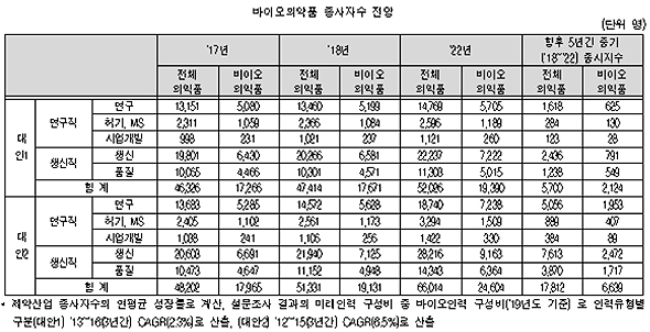 "5년 내 바이오 약업인력 최소 2100명 이상 증가"