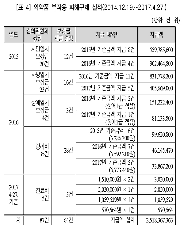 이 같은 사실은 국회입법조사처 김주경 입법조사관의 '약사법 86조 의약품 부작용 피해구제사업의 입법영향분석' 보고서를 통해 확인됐다.