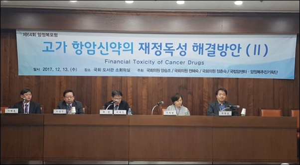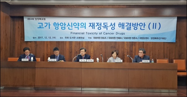 13일 '고가 항암신약의 재정독성(Financial Toxicity) 해결방안'을 주제로 마련된 제64회 암정복포럼의 핵심 안건은 바로 여기에서 출발한다. 건보재정의 지속성과 보장성 강화, 불가능해 보이는 두 마리 토끼를 잡기 위해 정부기관과 의약학 전문가들이 머리를 맞댔다.