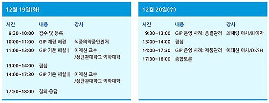 식약처는 오는 19일과 20일 양 일 간 서울 강서구 소재 한국의약품수출입협회관 2층 강당에서 'GIP 해설서 교육'을 실시한다고 밝혔다.