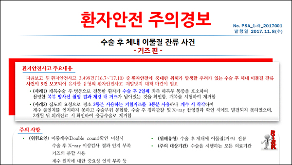 한편 지난해 7월부터 시행하고 있는 환자안전법에 따라 3060건의 환자안전사고 자율보고 사례가 접수됐다.