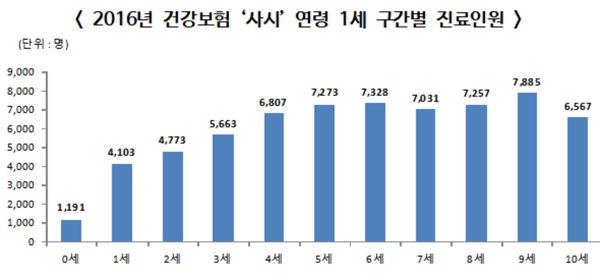사시 수술에 건강보험 적용을 받는 10세 미만 환자가 전체 환자의 절반 이상을 차지하는 것으로 나타났다. 대부분의 사시의진단과 치료가 소아기에 진행되고, 시력 발달이 약 8세 전후로 완성돼 사시치료를 위한 안경 착용, 수술 등이 이 시기에 집중되기 때문이다.