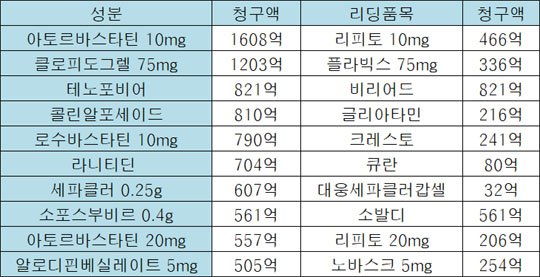 아토르바스타틴 10mg, 상반기 1608억 청구 '으뜸'