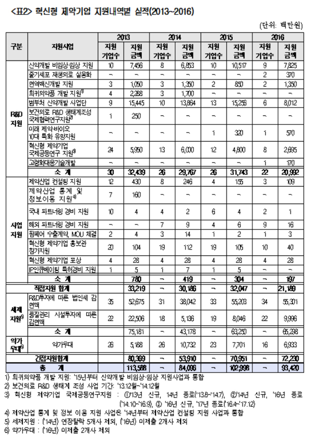 이 같은 사실은 보건복지부가 더불어민주당 남인순 의원에게 제출한 '혁신형 제약기업 지원내역별 실적', '혁신형 제약기업 기업별 지원' 등의 자료를 통해 확인됐다.
