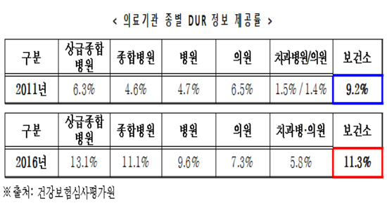 한편 보건소는 DUR 정보 제공에 따른 처방 변경률이 7.6%로 전체 종별 중 가장 낮은 것으로 나타났다. 약물금기 경고에도 불구하고 변경 없이 원래 처방대로 의약품을 처방한 비율이 가장 높다는 얘기다.