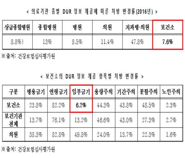 DUR 무시하는 보건소, 임부금기 처방변경률 최하위