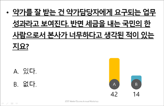 앞서 언급된 다국적사 임원은 보험등재 절차를 거치면서 본사를 설득했던 사례를 소개했다. 그는 "한국시장이 어떤 위치이고 얼마나 중요한 지, 또 한국의 제도적 특성을 설명하고, 신약을 간절히 기다리는 환자가족의 간절한 동영상을 만들어서 보냈다"고 했다.