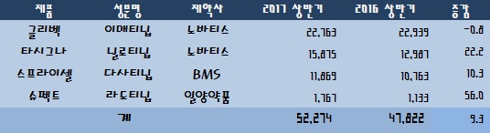 - 슈펙트 상반기 56% 성장…노바티스, 급여정지 면해 매출 보존