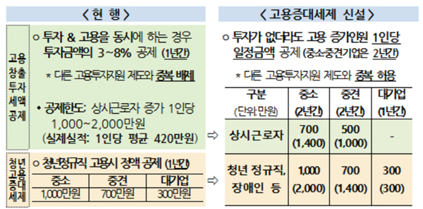 - 정부, 고용창출투자세액공제‧청년고용증대세제 통합...내년부터 적용