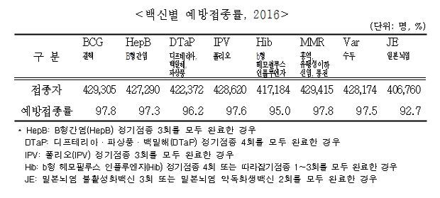 [KCDC, 2013년 출생 어린이 접종률 발표]