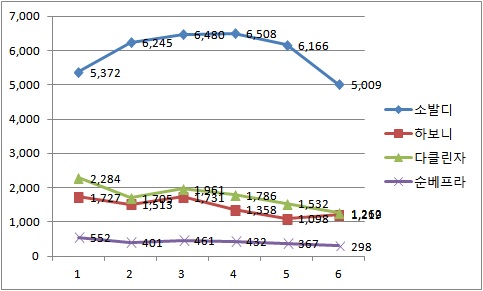 작년 한해동안 409억원대의 처방실적을 올리고, 지난 4월 65억원대로 최고치를 갱신했던 '소발디'의 월 처방액은 5월 이후 61억원대로 내려앉았다.
