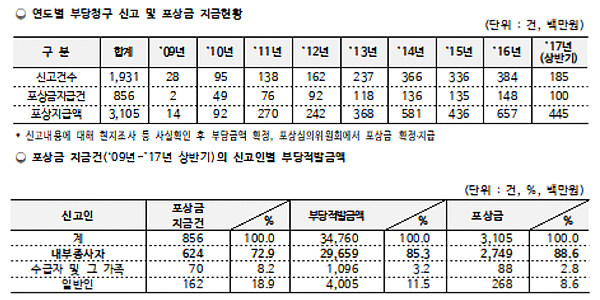 - 내부종사자 신고가 71% 차지...부당적발 금액만 34억원