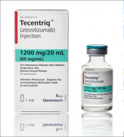 티쎈트릭은 PD-L1저해제로 PD-1저해제인 MSD의 '키트루다(펨브롤리주맙)', BMS·오노의 '옵디보(니볼루맙)'와는 차이가 있다. 즉 PD-1과 PD-L1의 결합을 막아서 T세포가 작용하게 하는 면역항암제의 기전에서 각기 다른 수용체를 차단하는 것이다.