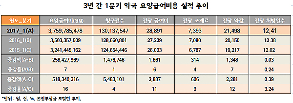 한편 급여비 연간 추이는 추후 청구분 이의신청과 정산 등으로 소폭 변동될 수 있다.