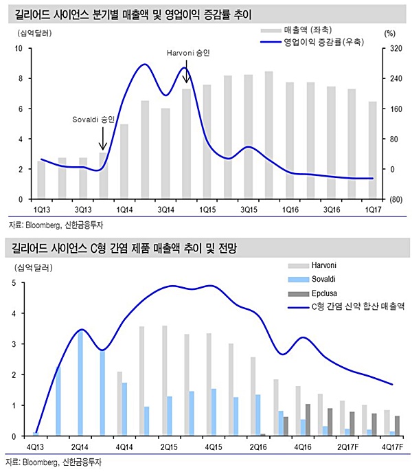단 바이오업계는 길리어드의 C형간염 파이프라인이 고전하면서 매출액이 부진했는데, 세엘진과 바이오젠이 그 간극을 메꿨다.